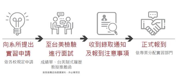 l   申請方式:(隨信檢附實習申請相關說明、台美制式履歷表以及面試問題回覆)